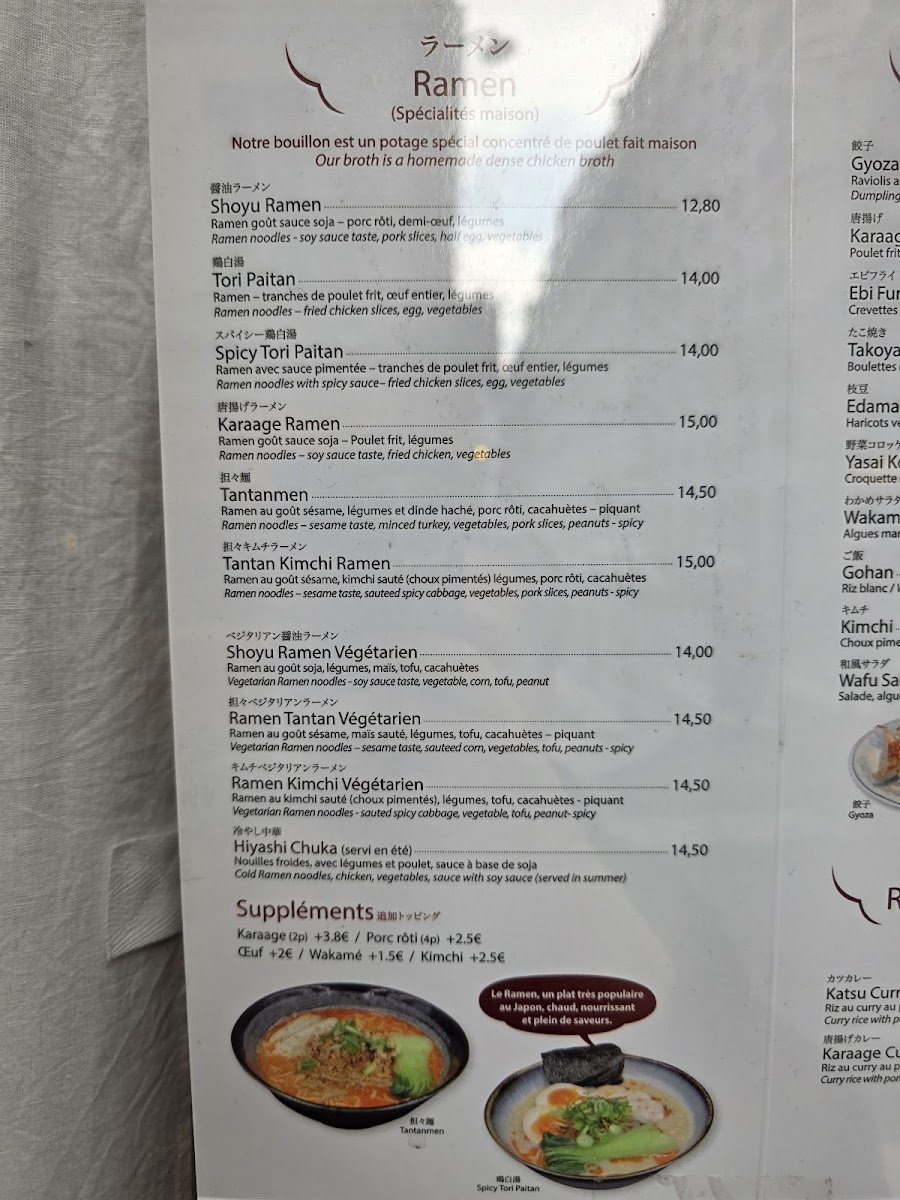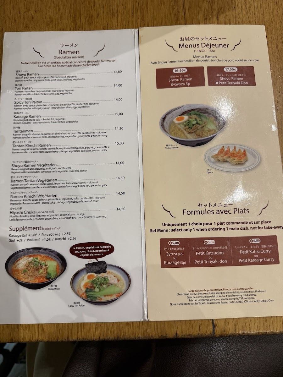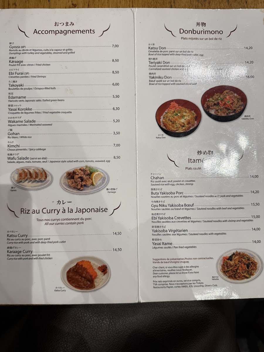 Kadoya offers a menu that gently bridges everyday comfort with authentic Japanese flavors, presenting a selection that feels both familiar and inviting. The menu centers around hearty dishes like steaming bowls of shoyu ramen and spicy tori paitan, alongside satisfying small plates such as gyoza and takoyaki croquettes. Whether you’re stopping in for a quick lunch or settling in for a relaxed dinner, the variety of ramen, donburimono rice bowls, and stir-fried noodles provide comforting choices that pair well with the casual, bustling atmosphere of this Parisian neighborhood spot.